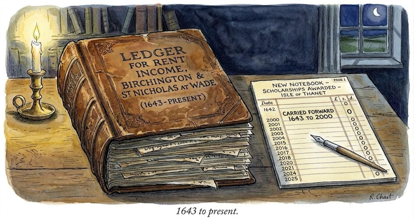 In 1642, Henry Robinson left his lands in Birchington and St Nicholas-at-Wade to St John's College Cambridge — not as owners, but as trustees — with what appears to be a clear and continuing obligation: to fund scholarships and fellowships for people born in the Isle of Thanet.